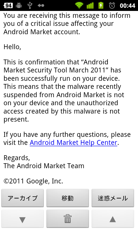 とかいろいろやってたら、Googleからメールがきて、「セキュリティツールを実行しましたよ。マルウエアのアクセスによるあやしいアクセスはありません。」と。
