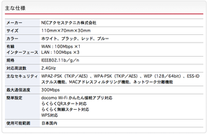無線LANルータースペック | サービス・機能 | NTTドコモ