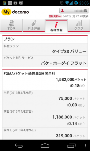 いろいろ、APNも変えてみたりしてみましたが、料金的にはいわゆる「パケホ2段階上の上限料金」となるようです。