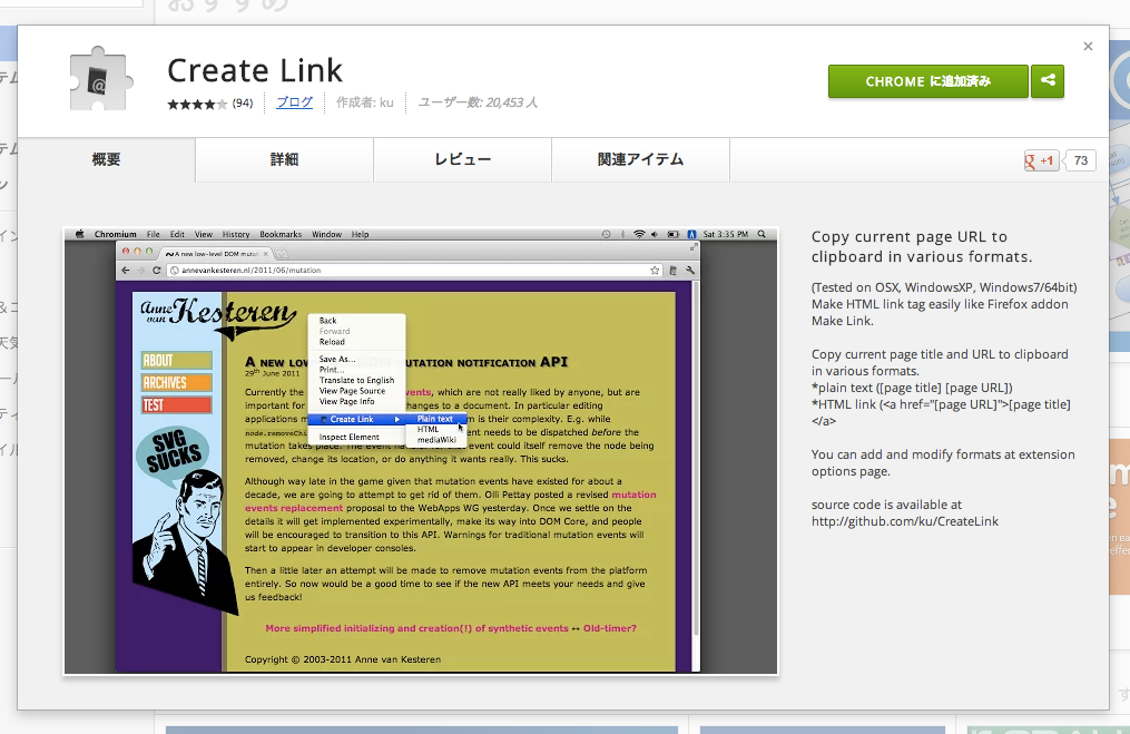 突然Chromeの拡張「Create Link 0.2.1」が動かなくなった | ソフトアンテナブログ