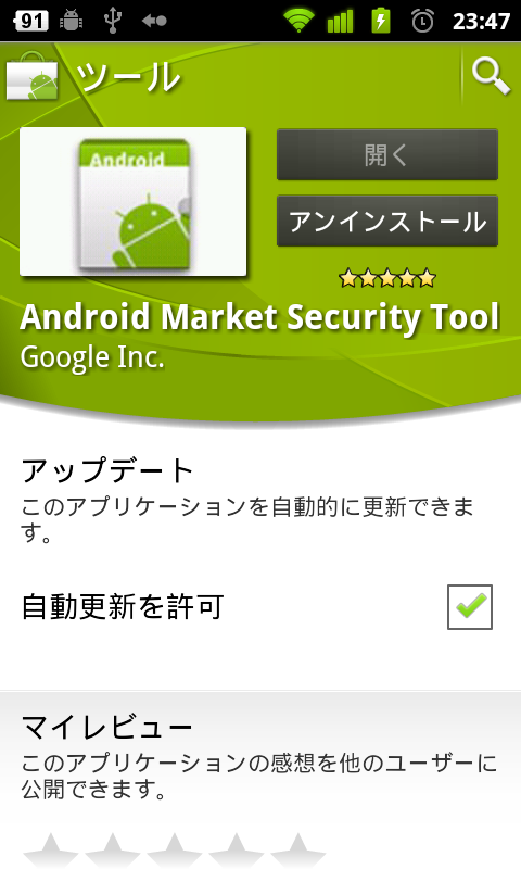 【速報!!】Google Inc.発 Android Market Security Tool をいれてみた! Last updated : 2011-03-08 01:15 むむむ!!! 速攻いれましたよ! むむむ!!! いれたのはいいけど、ランチャーから起動はできないようです。 続きを読む >>