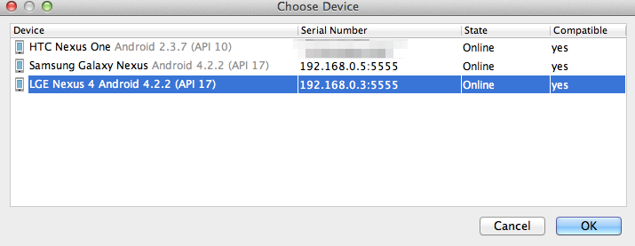 ただIDEで切替するには、すべての実機を接続しなくてはいけません。