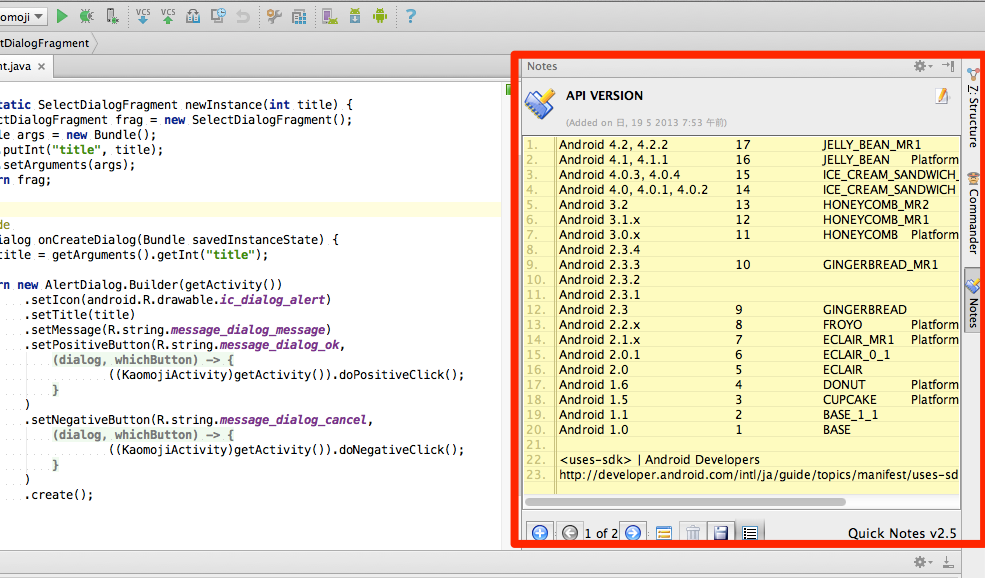 こんな風にAndroidStudio内に便利なメモ帳などを使いやすく入れちゃいます。